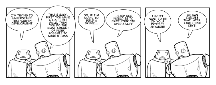 - Run the test you just wrote. If it succeeds then the existing code supports it and you should move on to the next smallest requirement.